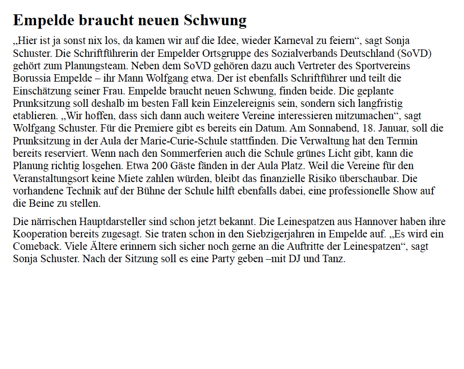 Willkommen auf unserer Presse-Seite, wo der rote Teppich aus Konfetti ausgerollt wird und die Schlagzeilen des Karnevals im Rampenlicht stehen! Tauchen Sie ein in die Welt der Pressemeldungen und bleiben Sie auf dem Laufenden über die schillernden Ereignisse und fröhlichen Schlagzeilen.