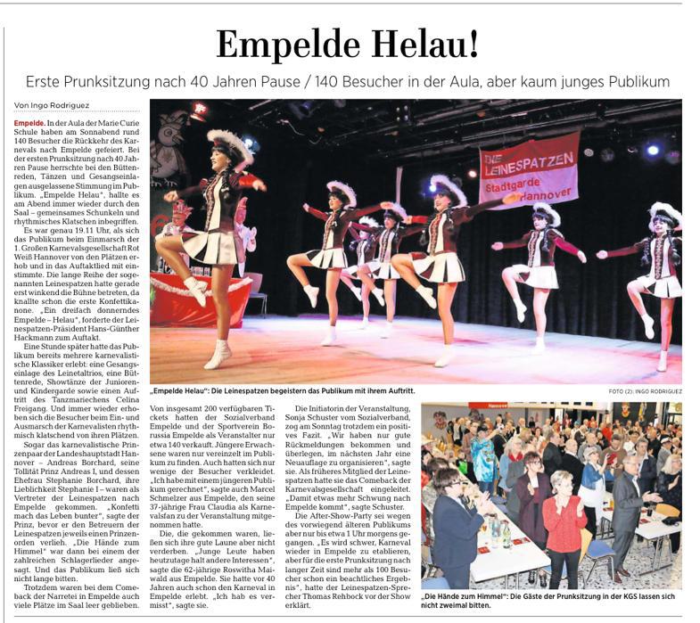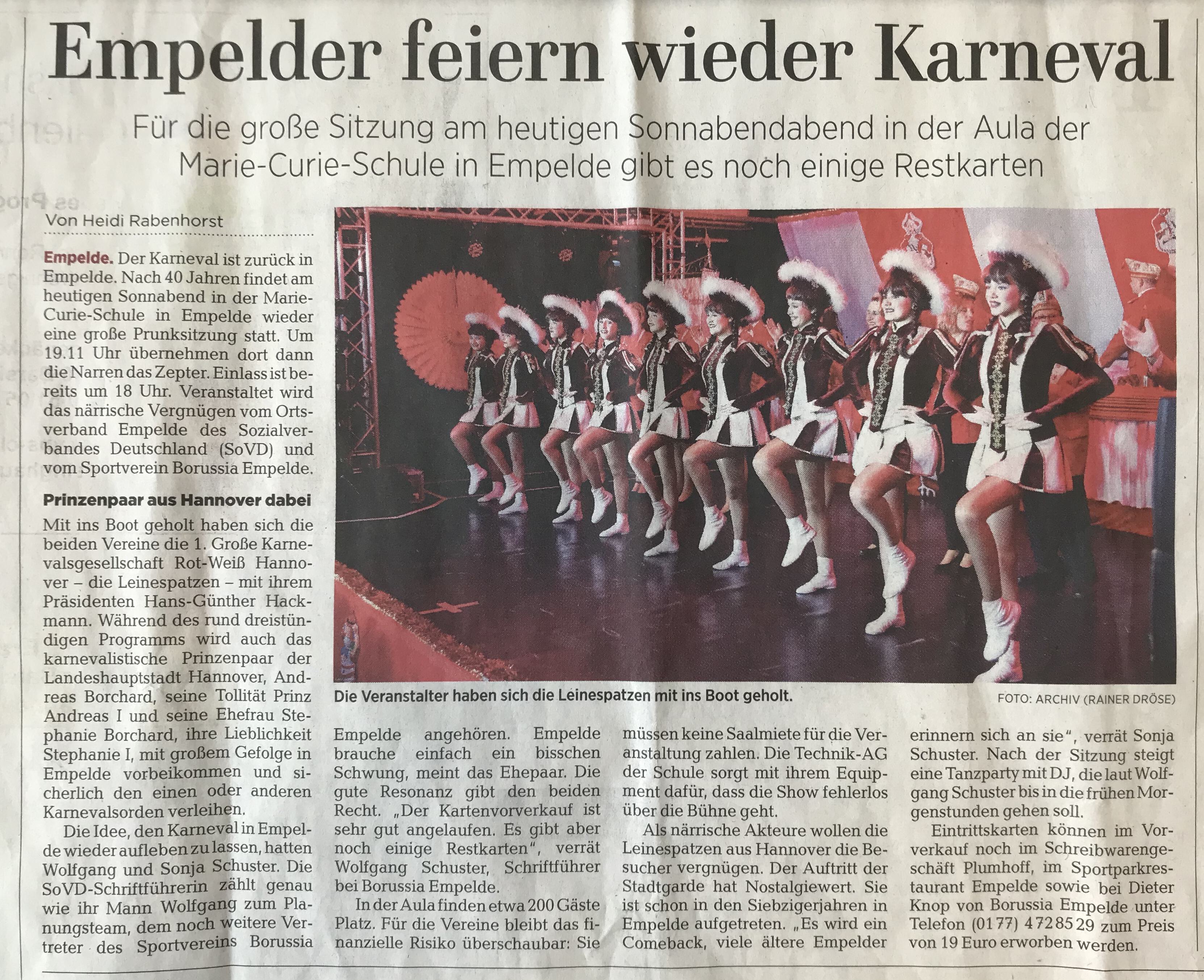 Freuen Sie sich auf einen bunten Mix aus Medienberichten, Interviews und Hintergrundgeschichten, die zu einem unvergesslichen Kapitel in der Geschichte der Leinespatzen machen. Bleiben Sie mit uns am Puls der Karnevalsnachrichten und erleben Sie, wie jede Schlagzeile einen Hauch von Konfetti und Frohsinn in Ihr Leben bringt.